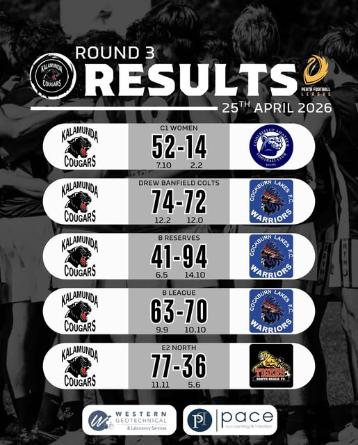 Next Weeks game: Round 4, Kalamunda V’s Melville at Harmony Fields 01.10 Saturday 2 May 2026